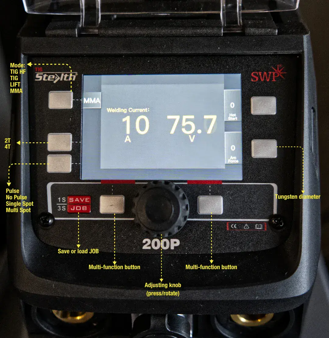 - Pulse TIG function: Adjustable pulse frequency for improved heat control on thin materials